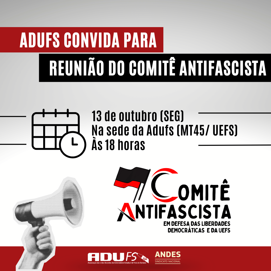 Instituído a partir de encaminhamento aprovado em reunião ampliada da comunidade universitária, em 26 de outubro de 2022, no auge dos ataques contra as instituições em decorrência das Eleições Presidenciais de 2022, o Comitê Antifascista em Defesa das Liberdades Democráticas e da UEFS foi criado para funcionar como uma frente coletiva com o objetivo de ser mais um espaço enfrentamento às violências múltiplas que constituem o fascismo.