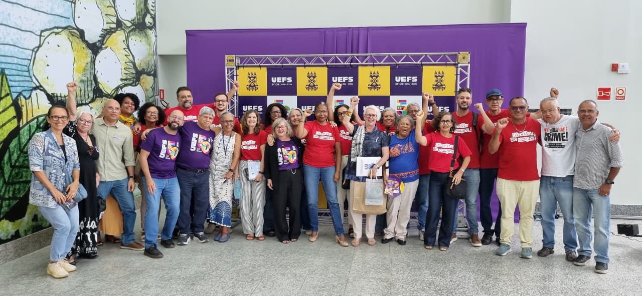 Durante a fala da professora Valdilene, demais docentes fizeram uma manifestação em frente ao palco para reforçar a luta contra a aprovação da Reforma Administrativa e pela garantia de direitos que são previstos no Estatuto do Magistério Público Superior das Universidades Estaduais da Bahia, mas não são assegurados pelo governo do Estado. Nos cartazes reivindicações por melhorias no Planserv; Revogação das Reformas da Previdência; Retorno da Licença Prêmio e Licença Sabática; assim como melhorias no Planserv. Além disso, foi aberta uma faixa relativa à PEC 038/2025: Reforma Administrativa: Se é ruim para o serviço público, é péssimo para o Brasil.