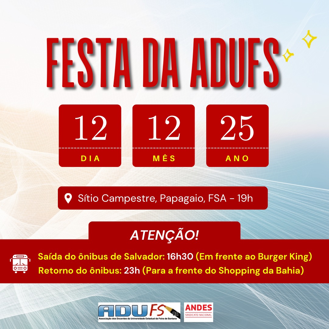 O Andes-Sindicato Nacional tem feito reiteradas denúncias sobre a precarização da carreira que ocorre não somente no magistério superior. A Adufs se solidariza com professoras e professores do município de Feira de Santana e mantém seu compromisso de defesa da qualidade da educação e valorização social do magistério.