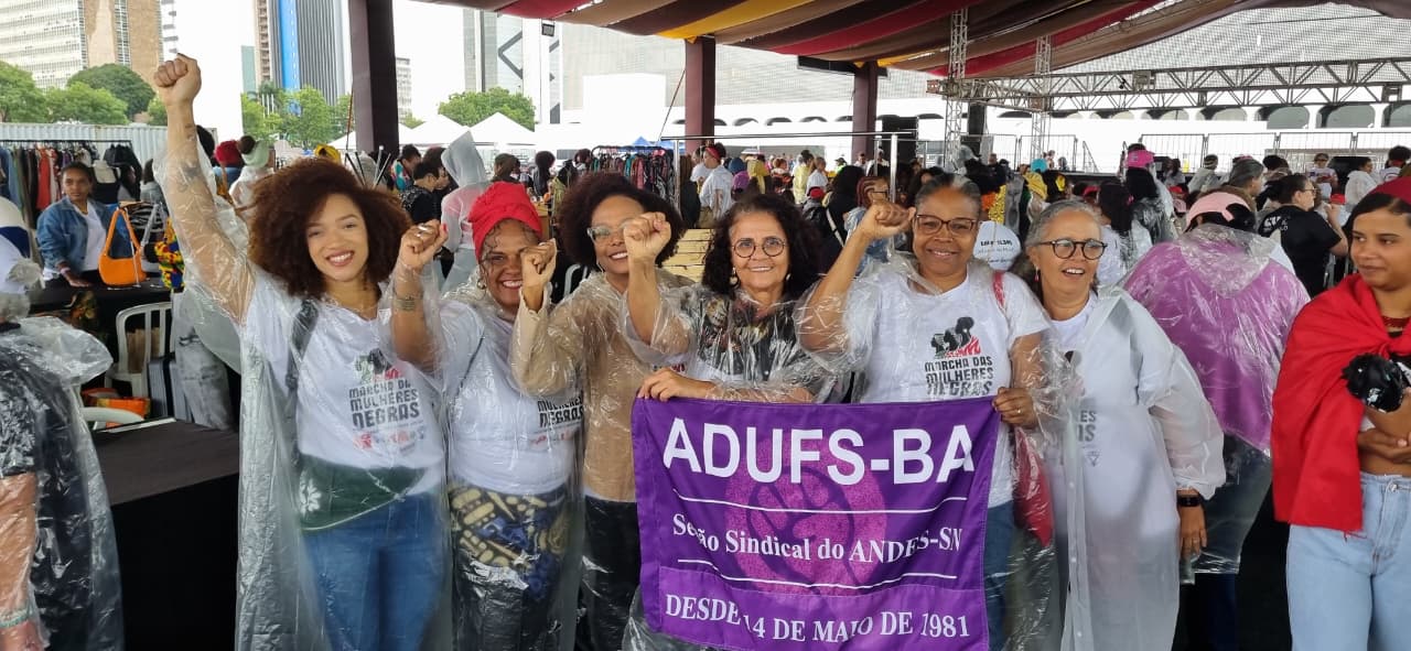 Uma comitiva da Seção Sindical participou da Marcha com representantes da diretoria, Coletivo de Docentes Negras e Negros e do Grupo de Trabalho para Políticas de Classe, Étnico-Racial, de Gênero e Diversidade Sexual (GTPCEGDS). Junto ao Andes-SN, que apoiou a logística, as docentes compuseram a Comissão de Saúde e Segurança, prestando assistência para a realização da mobilização em condições adequadas para as milhares de mulheres presentes.