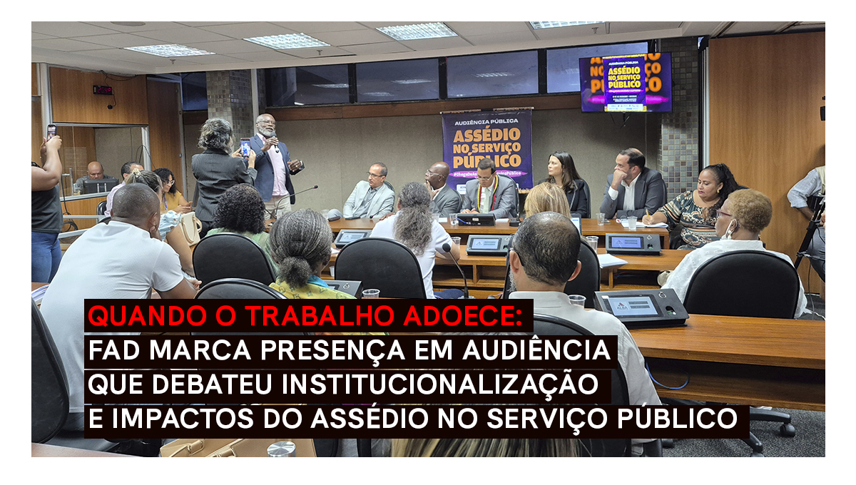 Invisível para muitos, devastador para tantos, o assédio no trabalho no serviço público foi objeto de audiência realizada na Assembleia Legislativa da Bahia na segunda-feira (1). O Fórum das ADs (FAD) esteve presente e compôs a mesa da sessão que contou com a participação de diversas entidades sindicais do funcionalismo, representantes de secretarias do governo, pesquisadores e servidores(as) vítimas que deram testemunhos de experiências vivenciadas.