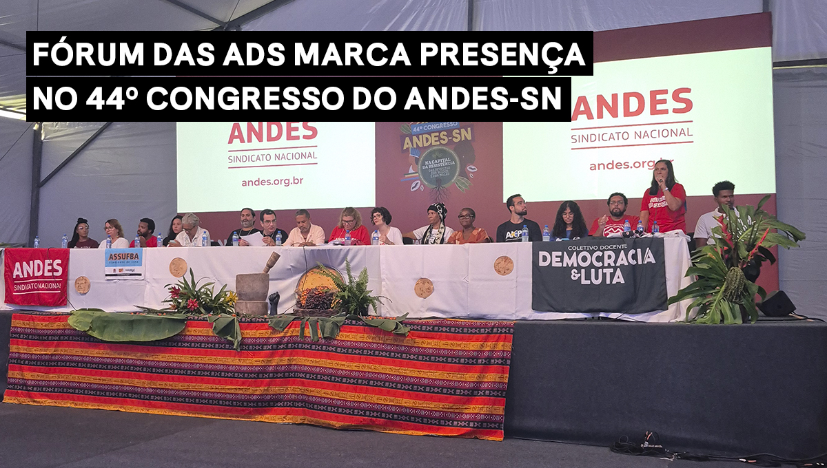O Fórum das ADs (FAD) marca presença ativa no 44º Congresso do ANDES-SN realizado na Universidade Federal da Bahia, em Salvador. Na segunda-feira, 2, o FAD integrou a mesa da plenária de abertura representado pela sua coordenadora, Karina Sales. O Congresso vai até o dia 6 de março e está reunindo mais de 640 docentes de 87 seções sindicais de todo e busca afirmar e delinear o papel da organização coletiva na construção do plano de lutas nacional da categoria.