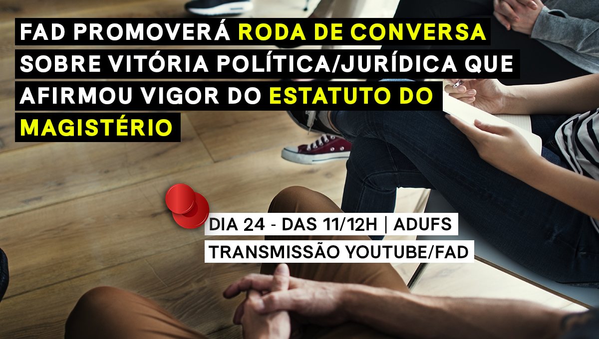 No próximo dia 24 de março, durante sua reunião ordinária, o Fórum das ADs promoverá uma roda de conversa, com transmissão ao vivo por seu canal do YouTube. O debate tratará da vitória política e jurídica que garantiu a manutenção da carga mínima de 8 horas semanais de ensino para docentes em dedicação exclusiva. Regra que se aplica quando envolvidos(as) em projetos de pesquisa e extensão aprovados por seus departamentos.